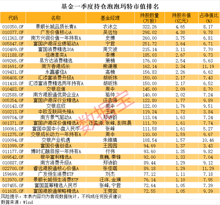配置了相关股票的基金也终于扬眉吐气了一把,尤其是在2022年四季度至2023年四季度泡泡玛特股价低点建仓了的基金,暴赚10倍的可能性极大。据证券时报·数据宝统计,上述期间有20余只基金新进建仓了泡泡玛特,其中广发价值核心A、中欧互联网先锋A等持股数均超百万股,且2只基金在今年一季度仍有持股,这表明其部分持仓完全吃到了泡泡玛特十几倍乃至二十多倍的涨幅。另外最新重仓市值第一名的景顺长城品质长青A为2024年一季度新进重仓,也吃到了巨大涨幅。