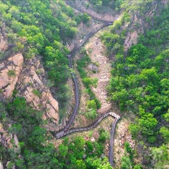 完整大环线解锁!登顶右转经栗辛庄村返程,一路串联山林、山谷、田园三重风光,春日草木繁茂,风景层次丰富,满足深度玩家的探索欲,全程步步有景。
