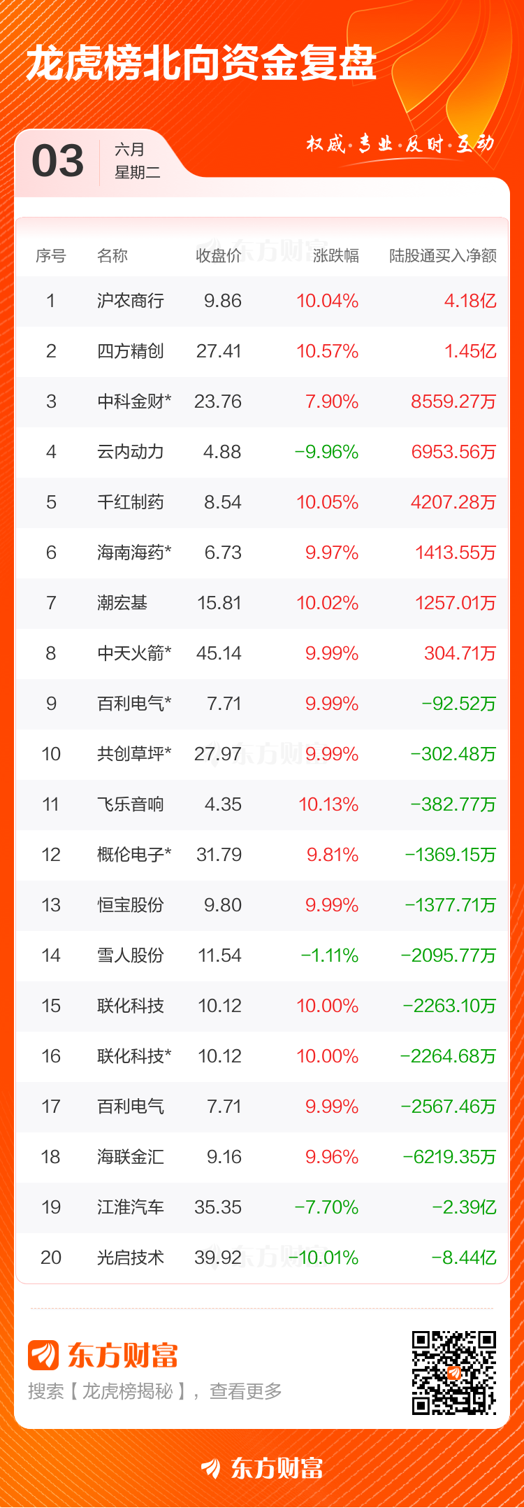 6月3日共有72只个股上榜龙虎榜通盈配资通盈配资,总上榜成交额177.41亿元。上榜个股中净买入额最高的是沪农商行通盈配资,金额为3.97亿元。